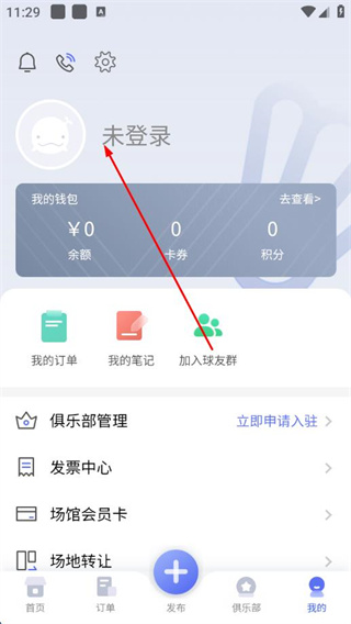 2、在个人页面点击未登录区域,进入登录注册页面。