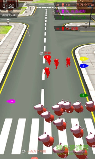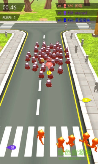 游戏画面简单,你需要在一个拥挤的城市场景中游荡,不断奔跑!城市中有超级多的人,在奔跑的过程中你会遇到许多惊喜彩蛋,许多和你志同道合的人,他们会加入你的奔跑大军中,你可以从一个人吞噬慢慢变成一群人吞噬,最终成为这座城市中最大的人群。只要遇到比你的军队人数少的队伍,你就可以将对手的人群吞噬,你的人群会变得更大,背后人群数量最大的领导即可获得胜利,收集他们的力量来守护城市吧!