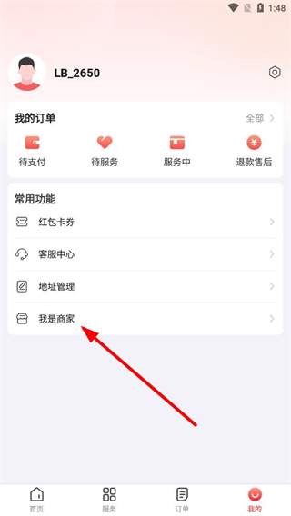 2、进入个人中心后,找到我是商家选项并点击,进入鲁班到家企业版的商家信息完善页面。