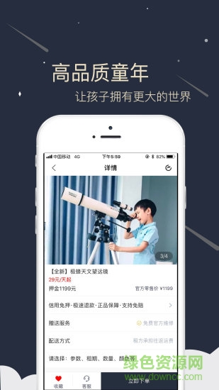 大司库租赁手机版是国内首款高端儿童产品租赁平台,提供了丰富的产品信息,用户在线租赁步骤简单,价格优惠押金低,支持线上续租,无压力租赁畅想品质生活,欢迎来下载!