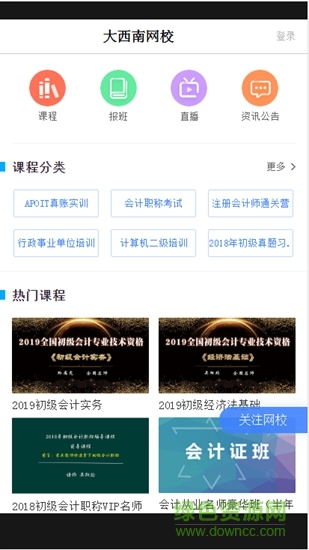 大西南网校安卓系统是一款专业的在线学习平台,集合会计、行政、计算机等多方面的课程为一体,权威老师在线直播授课,清晰讲解快速知晓学习难点,课后做习题考试,不断巩固提高专业成绩,欢迎来绿色资源网下载!