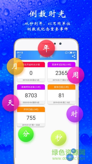 【倒数时光】分别以年、月、周、天、时、分、秒为单位,对重要事件进行倒数或纪念。