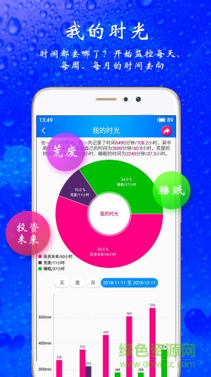 【我的时光】我的时光、今日时光,开始了解您每天、每周、每月或所有花在投资未来(积极向上)的时间、荒废的时间以及睡眠时间的长度及百分比。