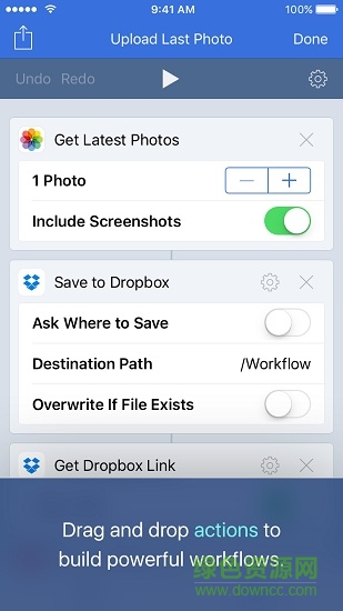 1.捷径动作:捷径应用中每个可以运行的动作(相当于 Workflow 应用中的 Workflow 动作),比如前文提到的处理图片的整个流程,就是一个捷径动作;