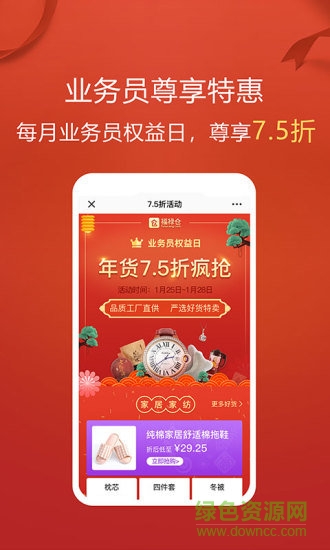 福禄仓商城app是一款提供正版商品特价特购的手机软件,这里的商品都由官方指定认证销售,而且由商家直接发货,全场包邮,会员更有专属折扣券可以领取哦,新用户注册就送大额优惠券,感兴趣的朋友就快来绿色资源网下载使用吧!