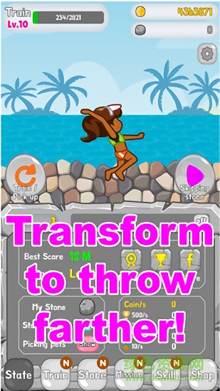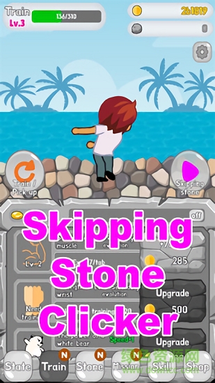 小时候大概很多小伙伴们都玩过打水漂这个玩意吧?现在这款游戏就是模拟这个经典的童年玩意而设计的!锻炼小伙子的各项能力,让他在打水漂中一展所长吧。