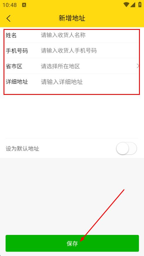 5、在新增地址页面,输入信息,点击保存,即可成功添加地址信息。