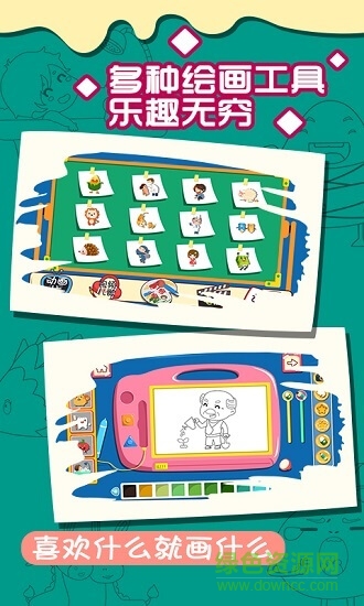 儿童益智画画游戏是一款宝宝可以随意发挥想象力去创造图案涂鸦的休闲益智类app,内有丰富原创图案模板,动物植物,人物,风景等应有尽有,打破常规,在画画涂鸦的同时也增长了对外界事物的认知和对颜色的理解,如果喜欢的话就来绿色资源网安装下载吧