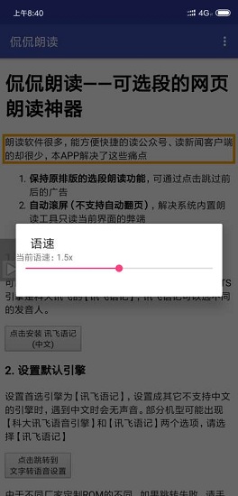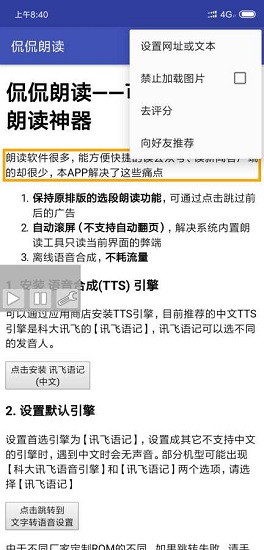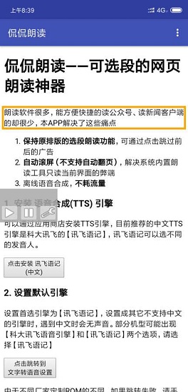 3. 自动滚屏(不支持自动翻页),解决系统内置朗读工具只读当前界面的弊端