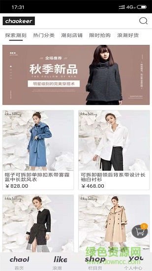 潮刻是一个线上可以线上开店的app,店主可以在上面注册成为商家,商城内涵盖多类型产品,服装箱包鞋子,电子产品等,,而且没有中间商赚差价,可以放心开店,放心购买,如果喜欢的朋友就来绿色资源网下载安装吧