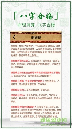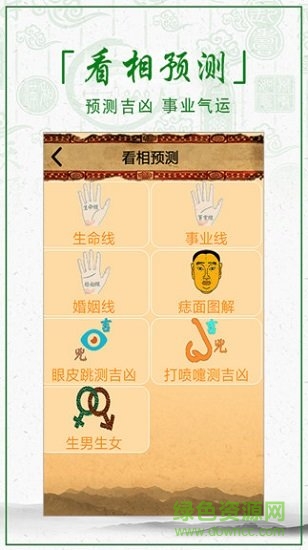 鬼马将军(命运测算)是一款最新版的算命软件,用户在软件中可以非常直观的了解到自己的八字婚育状况,还能分析自己的命运、手相、事业等,方方面面都能测算。喜欢就来绿色资源网下载吧!