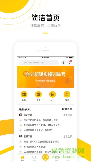 金猪财学是一款非常专业的金融知识类在线教育学习平台,最新行业动态资讯时刻知晓,视频课堂在线学习名师讲解,行业交流互动知识内容标记等。快来绿色资源网下载体验吧!