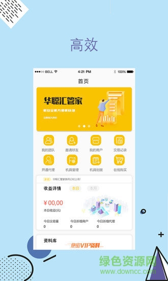 华聪汇管家,您的全能收单助理,收益、推广、查询统统一键搞定,操作简单,方便。数据清晰,分类查询,让每个人都可以享受科技的乐趣。