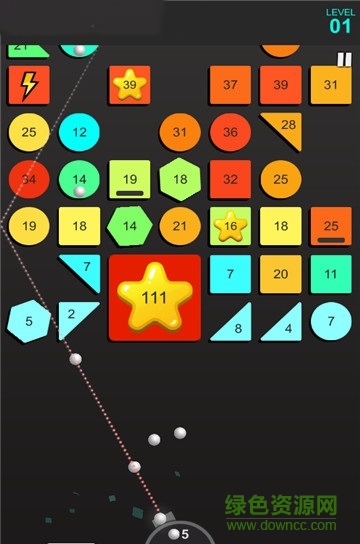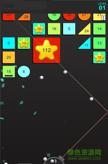 1.单易上手的游戏操作,通过点击拖动来规划发射弹球的路线。