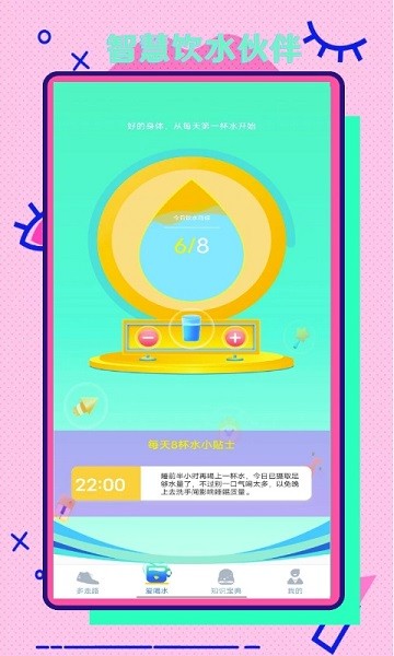 【爱喝水】每日喝水打卡,提醒用户每日及时补充水分,健康运动