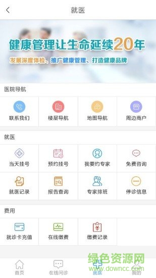 弘医app是为用户朋友们设计的一款健康医疗服务的应用软件,有了它,如果你身体有任何的不适,都可以在线咨询医生,如需入院检查,也可以直接利用手机预约挂号,非常的方便使用,让你的生活健康管理更加有规律,有需要的朋友就请来绿色资源网下载使用吧!