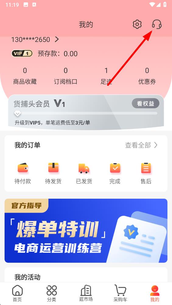 1、打开货捕头app,进入首页,点击底部导航栏最右侧我的选项,进入个人页面。
