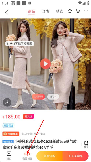 2、在女装商品列表页点击选中的商品,进入商品详情页。