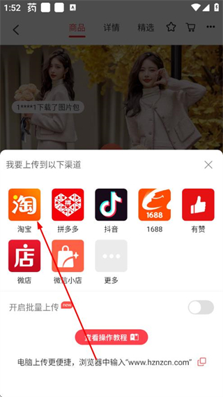 3、在商品详情页点击我要铺货,弹出铺货渠道选择界面。