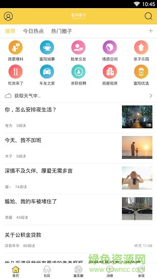 富阳圈子是一款为富阳市民精心打造的提供吃、喝、玩、乐、交友、社交等一站式消费分享和交流的社区平台。生活在富阳,爱上富阳圈子。本地市民可以在应用内查阅美食、娱乐、生活类资讯,足不出户,了解当地第一手信息,还可以在应用内交友聊天,增加交际圈,也可以通过应用内的小工具,查询天气、交通出行等。生活在富阳,爱上富阳圈子。