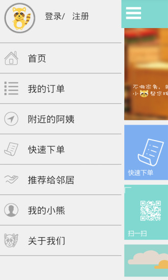 小熊阿姨app是一款基于地理位置为客户找到附近的钟点工和快递员的社区服务平台。邻里推荐的好阿姨!小熊阿姨是整合线下优质服务商和口碑个体服务者,客户可以通过手机软件预约钟点工、大扫除、衣物干洗等服务,预约后,小熊阿姨安排相应服务人员上门服务。 “我们不是活雷锋,我们是互联网家政!