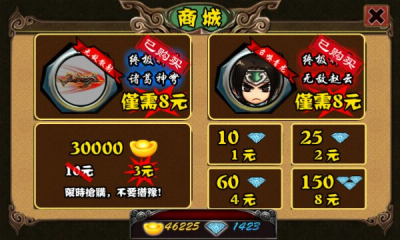 2、进入游戏,购买钻石和道具,进入内购界面,点击左上角返回即可购买成功;