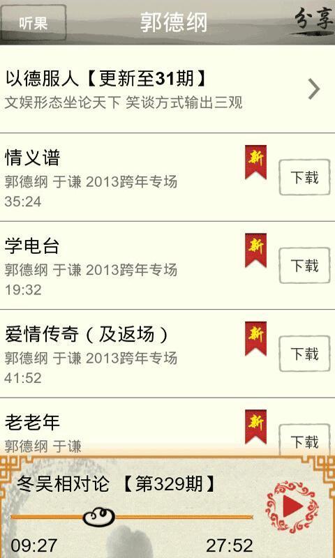 6.最深的底蕴:听果着重呈现包含中国文化的有声内容,让您在娱乐的同时,多增加一些文化的积淀