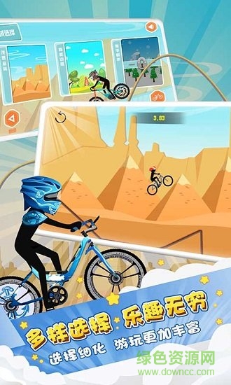 一款融合火柴人和单车元素的动作竞速闯关手游,玩家将操控一个骑着自行车的火柴人,进行各种特技挑战,丰富的关卡场景等你来征服,体验极致的竞速快感,
