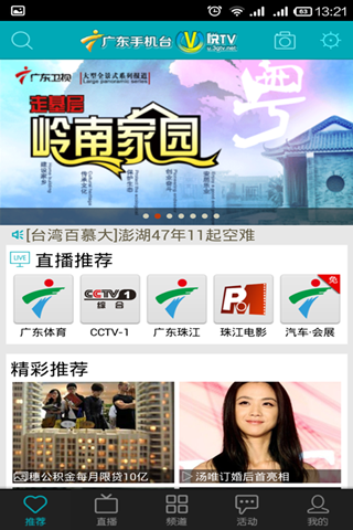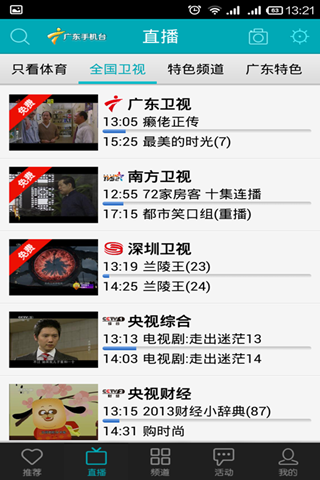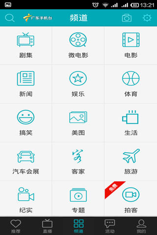 1.电视直播:在线电视直播频道包括各省卫视、广东省台和特色频道等,更多热门直播频道将陆续上线,总频道数超过50个。