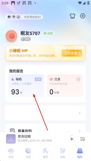 2、进入个人页面后,点击我的报告板块中的睡眠选项。