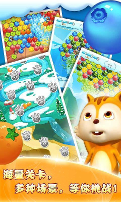 松鼠大冒险是一款玩法和泡泡龙类似的消除类游戏,游戏中可爱的小松鼠为了寻到美味的坚果,毅然的踏上了寻找坚果的征途,全世界众多美味坚果等待小松鼠去品味,此版本为内购修改版。喜欢泡泡龙游戏的小伙伴不要错过咯!