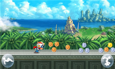 1、通过点击屏幕左下角和右下角的按钮控制人物躲避或跳跃;