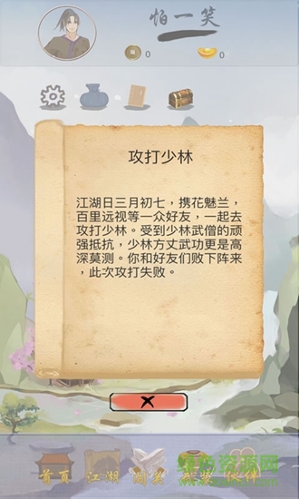 1.放置类休闲玩法,画风简约,文字叙述为主,给你不一样的江湖;