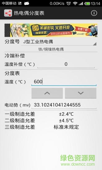 热电偶分度表indexing table软件是一款实用的电偶查询app,有详细的温度补偿、分度表温度、电动势、各级制造允差等数据,欢迎有需要的朋友到绿色资源网下载使用!