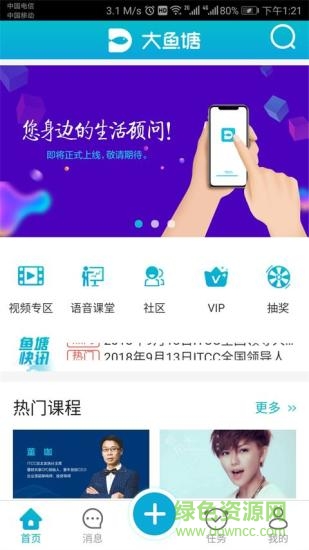 大鱼塘app是针对成人设计的一款在线学习平台,推荐课程不断更新,覆盖了多个行业,在线学习听课实时与讲师互动,一键缓存离线学习,掌握更多生活及职业技巧。欢迎来绿色资源网下载!