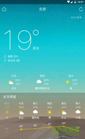 5.天气预报功能:支持全国所有大中小型城市天气预报查询功能,准确率100%。提供7天天气预报,图形与文字结合让您一秒就可以知道一周天气。