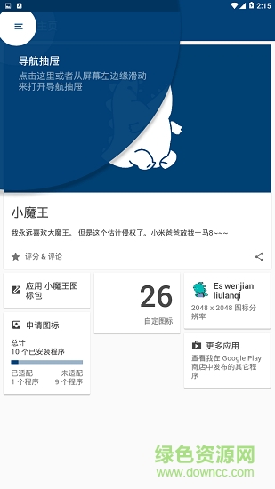 小魔王图标包是给手机更换图标的软件,让你的手机桌面与别人的与众不同,在这里你可以随意更换你软件的图标,选择自己喜欢的图片来设置,或者用软件自带的图片,使用方法也超级简单,需要的用户快到绿色资源网下载体验吧!