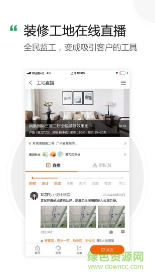 5.服务体验差,业主频繁跑工地?——打造工地直播功能,随时上传工地动态,业主可见,增强服务体验。