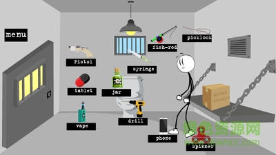 尝试观察周围的一切,利用你敏锐的观察力和智慧帮助这个火柴人逃离监狱,在正确的时刻做出正确的选择,或者选择一个错误的选择,这会导致一个失败的结局。最终的目的是为了帮助火柴人越狱成功。