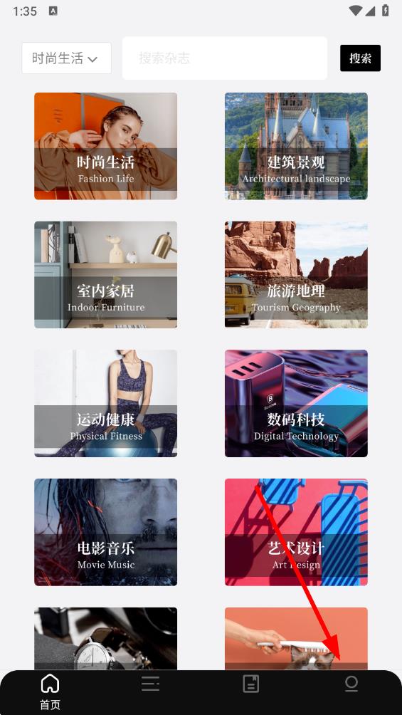 1、打开杂志迷app,在首页点击右下角的个人中心图标,进入个人中心界面。