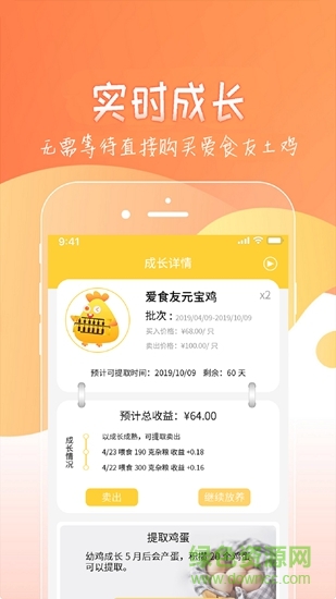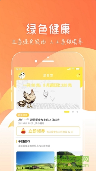 爱食友农场致力于通过互联网+传统养殖行业产业链,结合线上领养的一种创新型平台,使产业链扁平化、细节透明化、流程互联网化,所有资产端均实地考察,让更多人共享互联网养殖所产生的收益,并为企业和用户带来透明可信的社交化网络交易平台,让用户便捷的获得养鸡的回报。