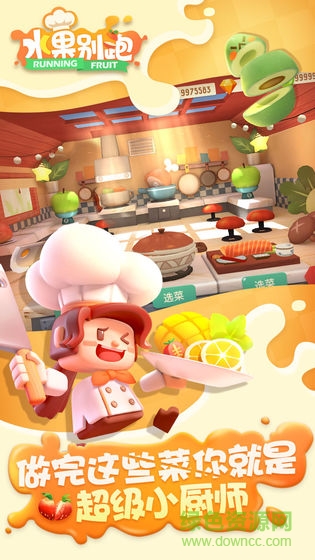 水果别跑是一款卡通食材的休闲收集小游戏,玩家将在游戏中扮演一个厨师,你需要收集很多的食材,
