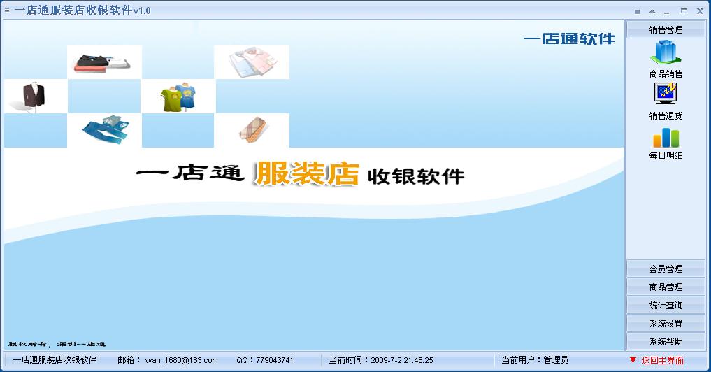一店通服装店收银软件是一套非常简单 实用 易用 的服装零售行业收银管理软件,导入基础资料,无需复杂的设置,即可开始销售,轻轻松松实现电脑化管理。