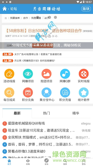 月云网赚论坛app是小编特地为大家所精选的一款手机赚钱软件,这里拥有专业的论坛,用户们可以根据自己对新闻趣事的理解,完成各种任务就能获得酬劳,而且每天任务量都很多,让你能够赚取丰厚的收入,有需要的朋友就快来绿色资源网下载使用吧!