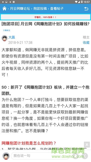 属于月云网旗下的app软件,通过云集千万赚客投稿一手线报资源信息的平台,每天都有海量资源分享,真正免费的平台无需资金投入就能参与,零花钱每天赚不停。月云网的理念就是:一个人单打独斗永远不如抱团发展,让每一个会员可以通过平台推广自己,月云网是第一个做到的!