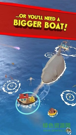 驾驶船只时,你需要高速航行去拯救尽可能多的泳者,来提升船只规模。你船的规模越大,就越容易击败巨鲨。特别是,巨鲨也会由于吞食越来越多的鱼类、浮标、码头木板、泳者……而变得更加庞大……