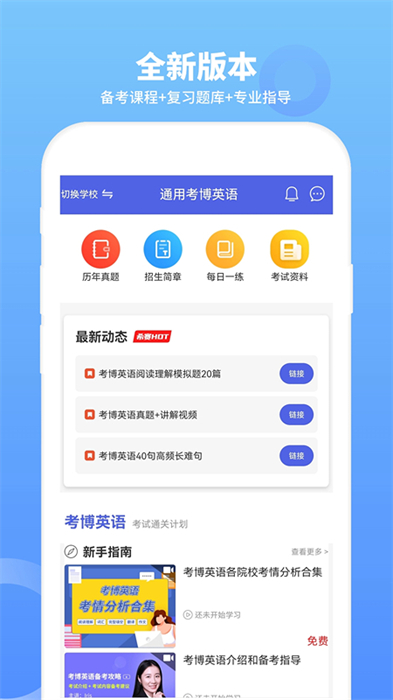 专门为准备考博的用户准备的英语学习软件,在手机上就能直接学英语,走到哪里都能学习英语,这里有最全的智能评测系统,而且还有非常大的题库,每天指定学习计划,每天都能练习,赶紧学起来吧。