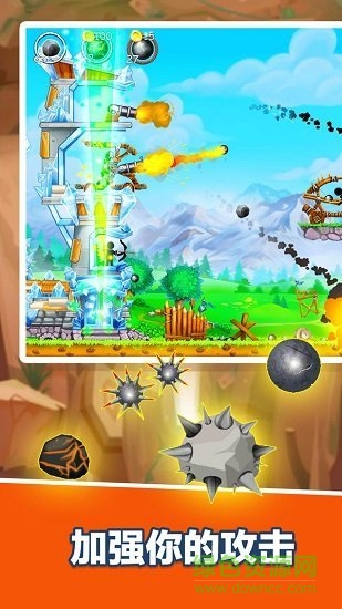 3、除了弹射器之外,你可以用准确的炮弹攻击并摧毁弩炮台后的敌人。