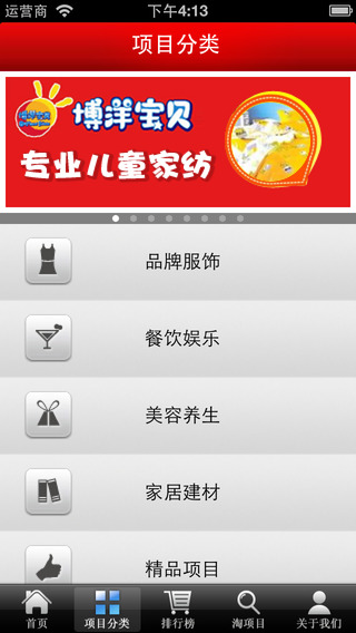 为您推荐了品牌服饰、餐饮娱乐、美容养生、家居建材、精品项目五大类上千个热门商机。