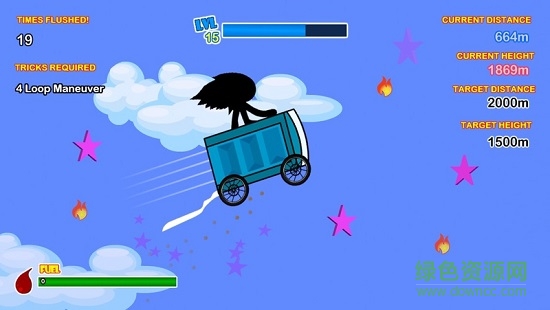 有很多项目穿插在你的火柴人便盆赛车学习边境飞的空间。当他的赛车中的便盆,控制和平衡它得到物品,如果得到火项目,便盆将提振,如果你获得星星项目,你将获得金币,用于升级你的便盆和技能。
